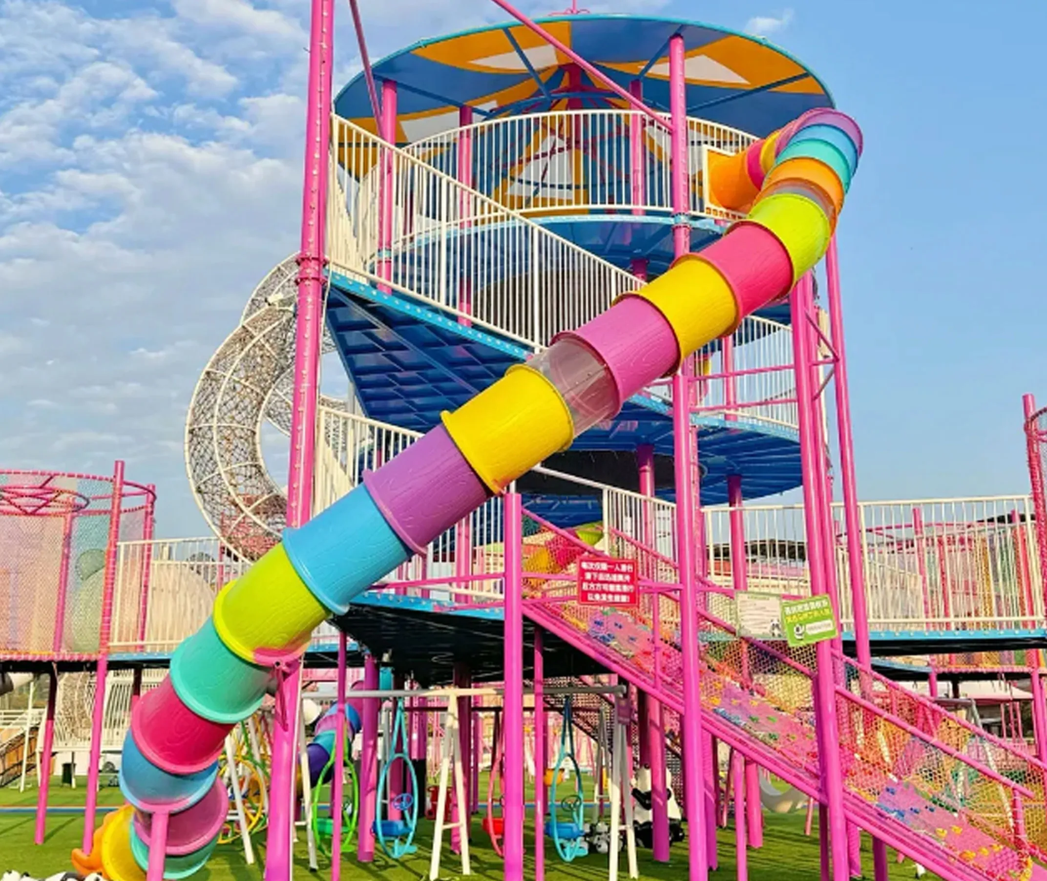 A4: The main structure is hot-dip galvanized steel (anti-rust, durable), play surface is high-density PE/HDPE (non-toxic, wear-resistant), and soft parts are flame-retardant PVC. All materials meet international safety and environmental standards, non-toxic and eco-friendly, and can withstand harsh outdoor weather, with a service life of more than 15 years for the main structure.